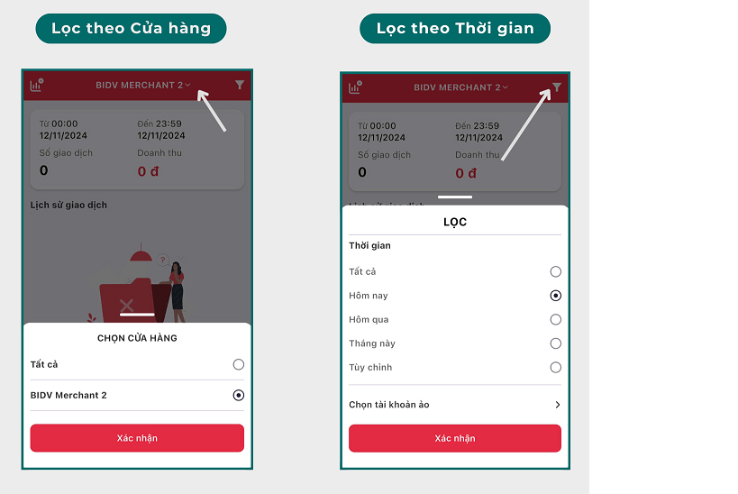 Để lọc doanh thu của cửa từng cửa hàng hoặc lọc trong từng khoảng thời gian khác nhau thì thực hiện như trong hình: