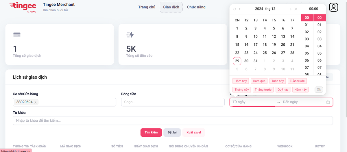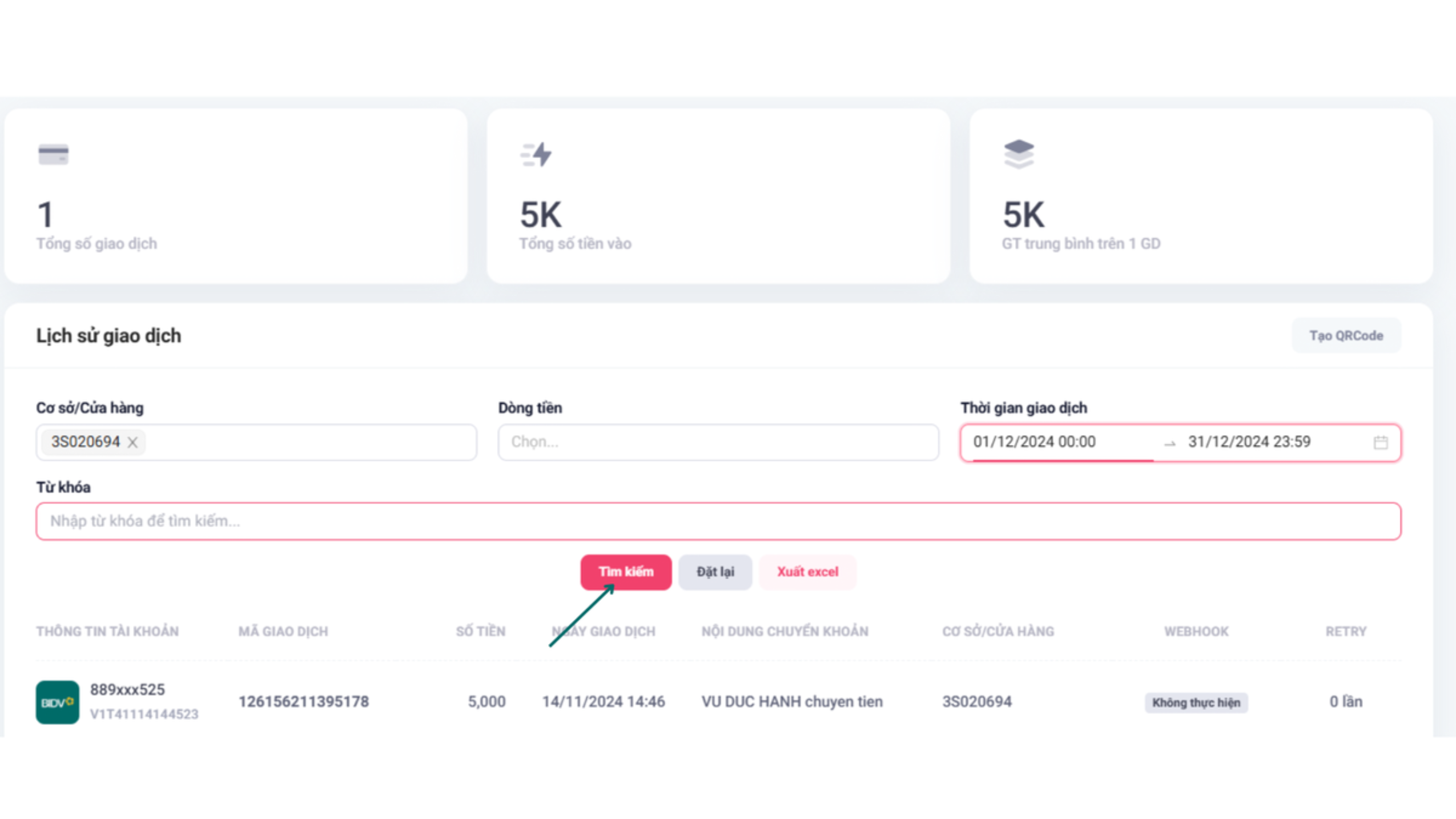 Bước 4: Sau khi đã chọn đầy đủ các tiêu chí, bấm tìm kiếm để xem lại các giao dịch